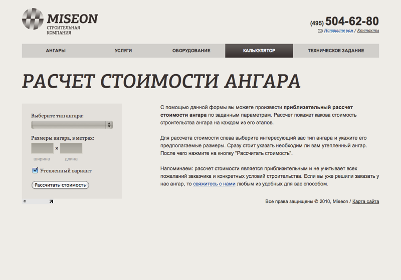 Сайт строительной компании «Мисеон»