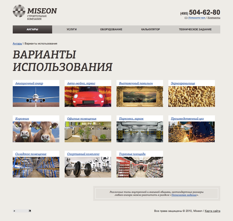 Для каждого вида ангаров разработана сделана отдельная страница.