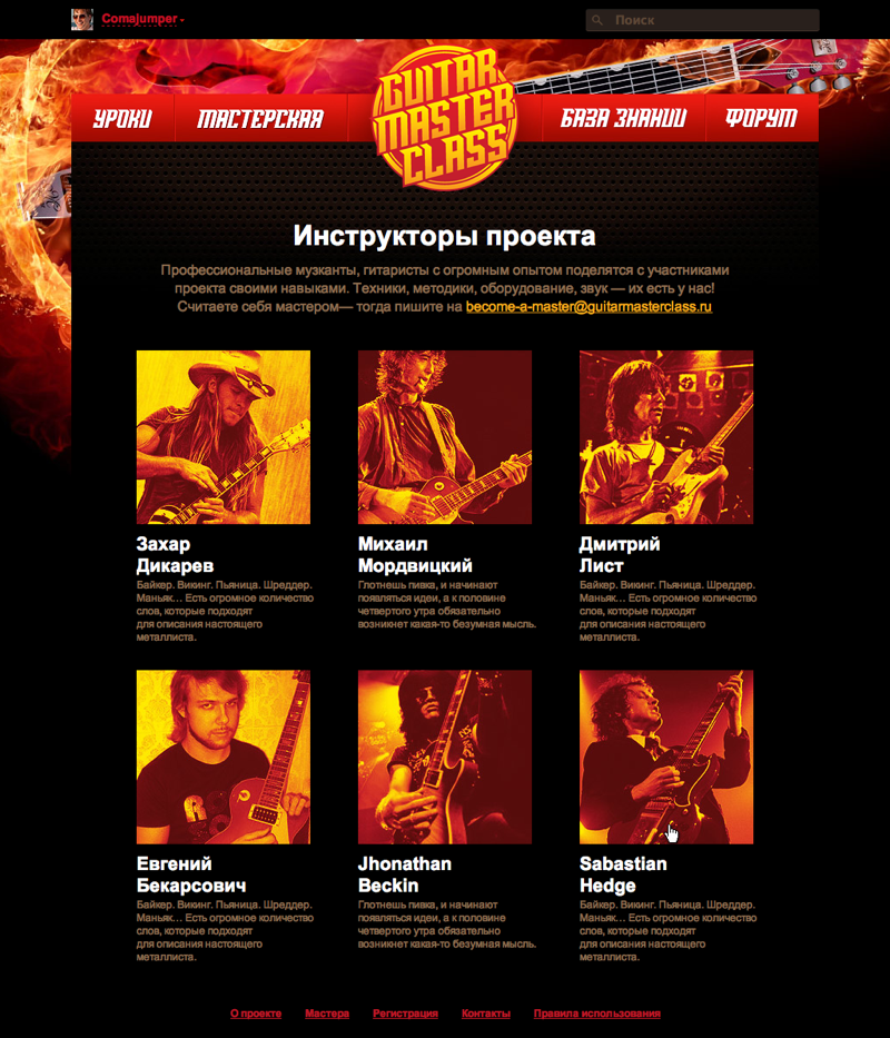 Главное преимущество проекта - это качественный материал. Все уроки классифицируются по жанрам, стилю, уровню пользователя. Есть возможность поиска уроков по исполнителю. Для удобства поиска все уроки снабжаются тегами.